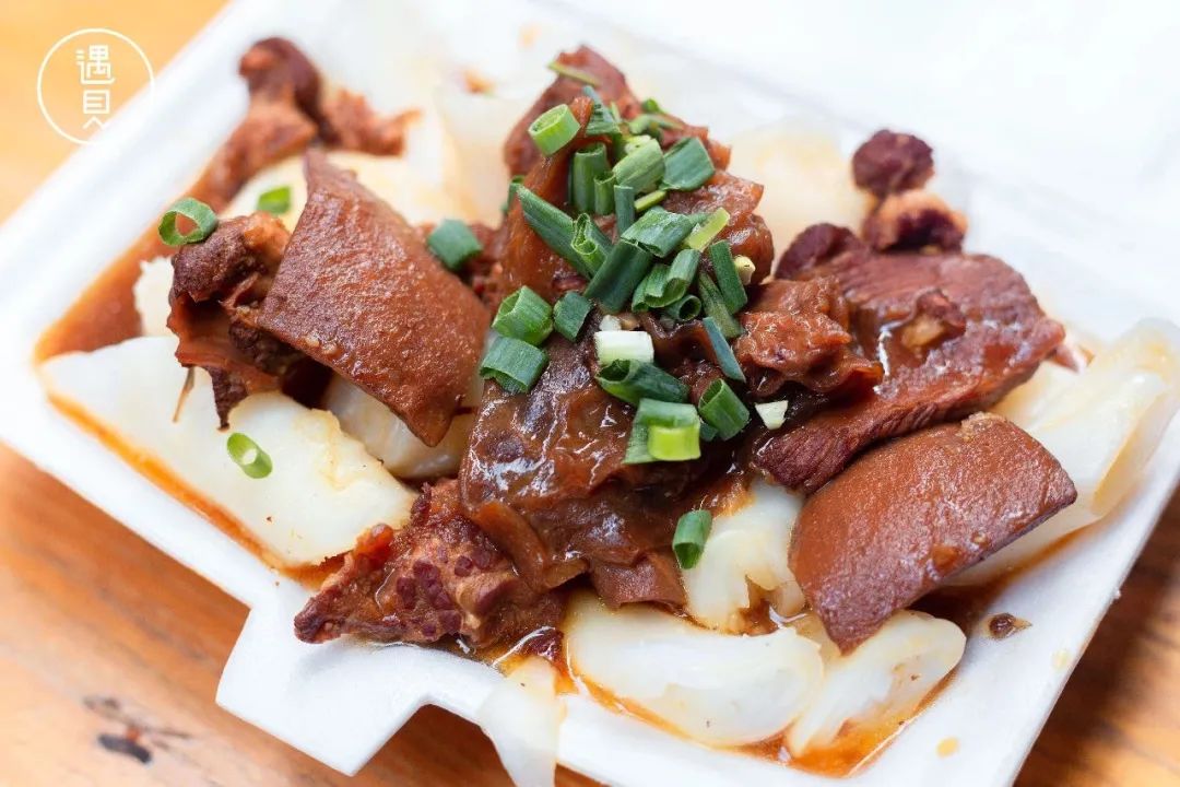 猪肠粉白如雪,薄如纸,口感滑嫩,蒸煮方式与沙河粉相似,以竹窝盛稀米浆蒸成薄粉皮,再把粉皮卷成长条形,因形似猪肠而得名。