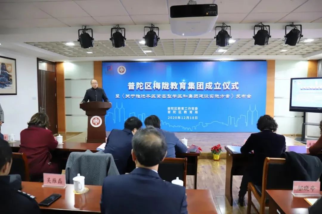 华东师大二附中普陀校区2020学年第一学期开学典礼现场2020年12月18日,普陀区梅陇教育集团成立仪式在上海市梅陇中学举行,标志着普陀区在创新学区化集团化办学模式上迈出关键一步。梅陇教育集团将在“名校+新校”的办学模式下,进一步做大做强梅陇中学教育品牌,全面推进区域义务教育优质均衡发展。