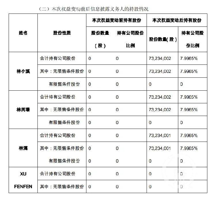 该公告还特别提到,因3名子女均未成年,对于股票存在的股权质押情况,将由3人的法定监护人即3人母亲许芬芬继续全面履行相关合同。3人拥有的上市公司股份权益发生相应变动,相关变动事项也将由其法定代理人许芬芬女士通过非交易过户方式代为处理。