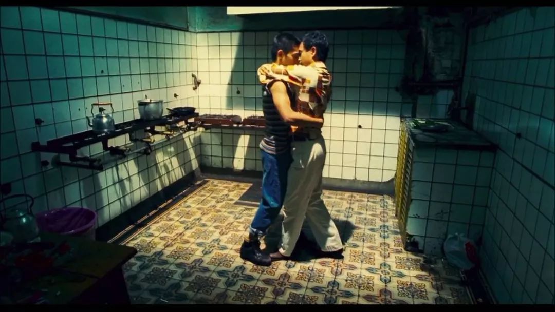 ▲张国荣梁朝伟跳舞时的厨房,虽然逼仄破旧,但由于鲜明的色彩搭配反而成了经典的港片意象。《东邪西毒》:
