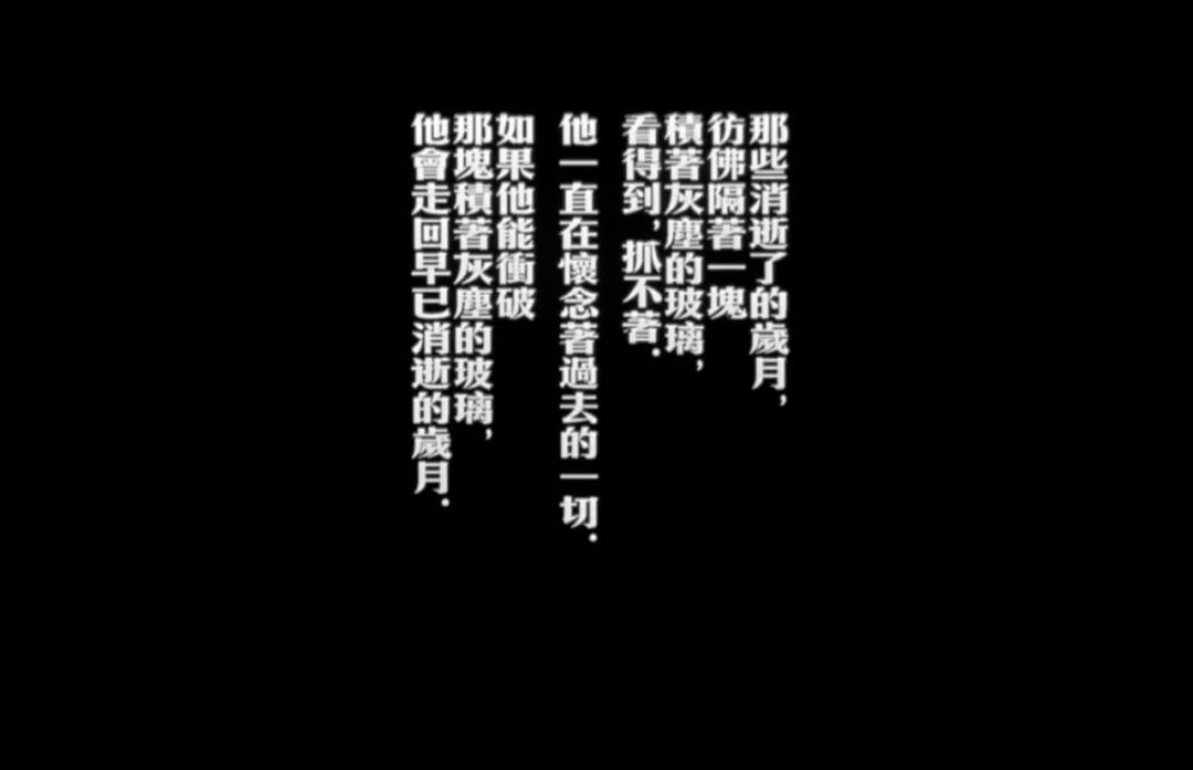 那些消逝了的岁月,仿佛隔着一块积着灰尘的玻璃,看得到,抓不着。他一直在怀念着过去的一切,如果他能冲破那块积着灰尘的玻璃,他会走回早已消逝的岁月。是的,那个时代已过去,属于那个时代的一切,都不存在了。