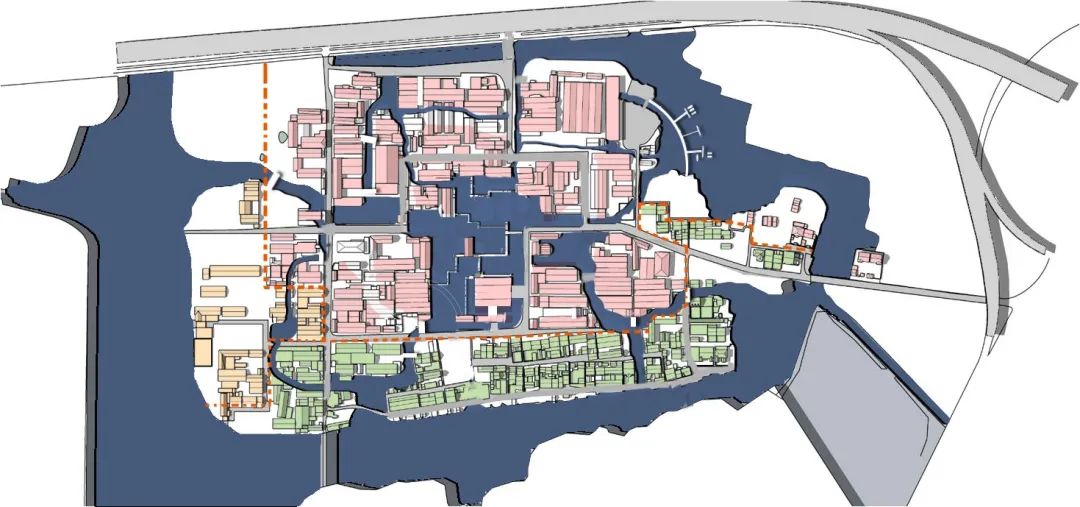 ① 概念性规划设计层面:根据一二期整体规划要求,对近500亩的老的居住、工业混合区进行改造和更新。需要拓展新时代城市更新理念,研究自然与城市共生关系,提出“新江南水乡”商业空间模式,并从规划层面整体研究空间布局、落实空间引导、构建新的城市生活场景,提出实施策略。