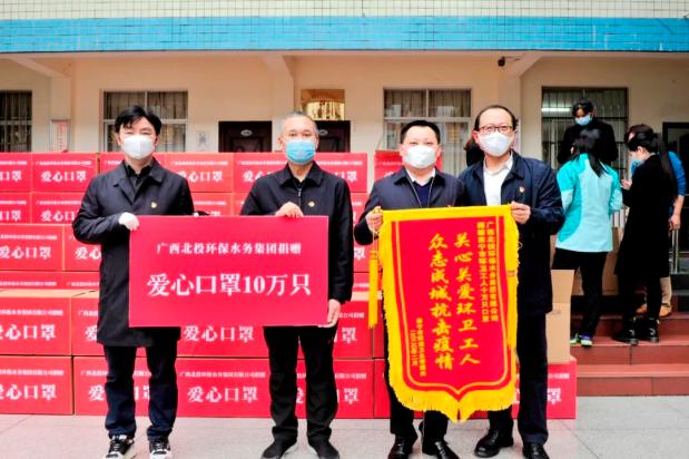 为南宁市环卫系统捐赠一次性防护口罩。新时代呼唤新担当,新担当需要新作为。欠费不停水、减免租金……面对突如其来的新冠疫情,北投环保水务集团勇挑国企担当,全力保障供排水安全稳定运行,先后向南宁市环卫系统、青秀区人民政府等单位捐赠一次性防护口罩合计61.5万只和隔离防护衣4000件;落实租金减免政策,减免水费290万元、租金23万元;无偿援建广西“小汤山”医院——防城港市第一人民医院感染性疾病科总价约10万元的应急负压病房项目供水配套设施……一系列“硬核”举措,保障民生福祉,助力复工复产,为打赢疫情防控阻击战总体战作出了积极的贡献。