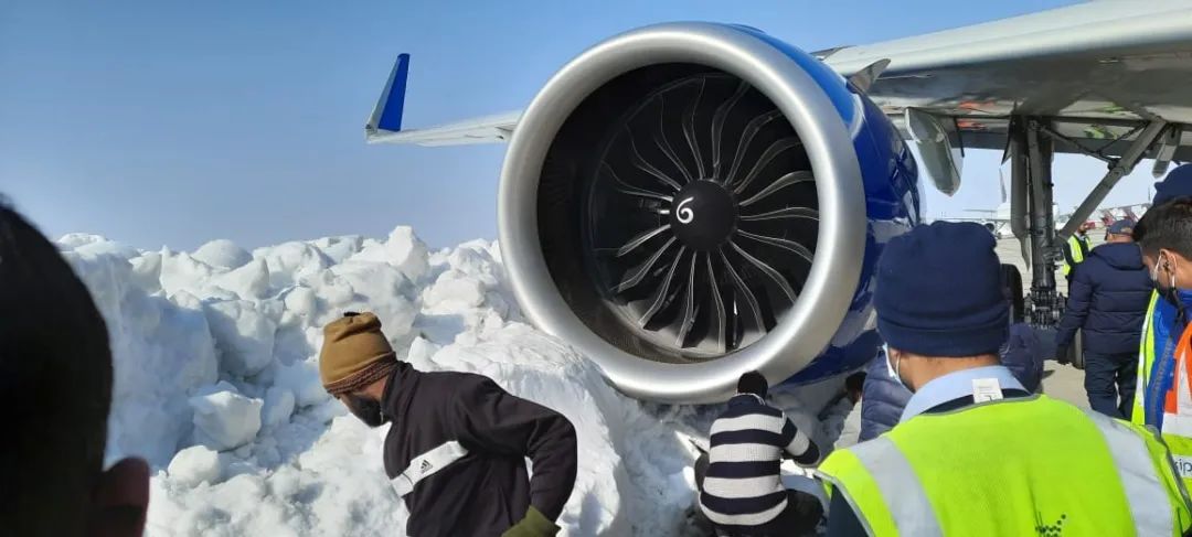 一架飞往德里的靛蓝航空A321NEO在印度斯利那加机场滑行时“误入”了滑行道附近的一个积雪堆中,导致航班延误。最新的报道表明,所有乘客未受伤。