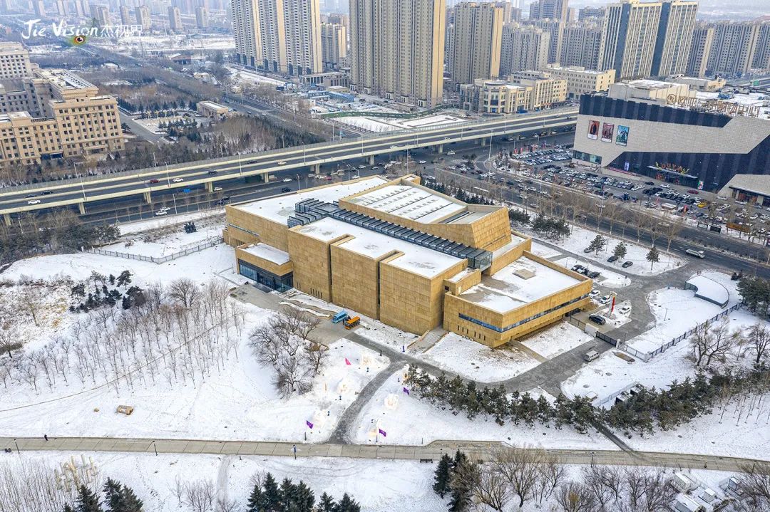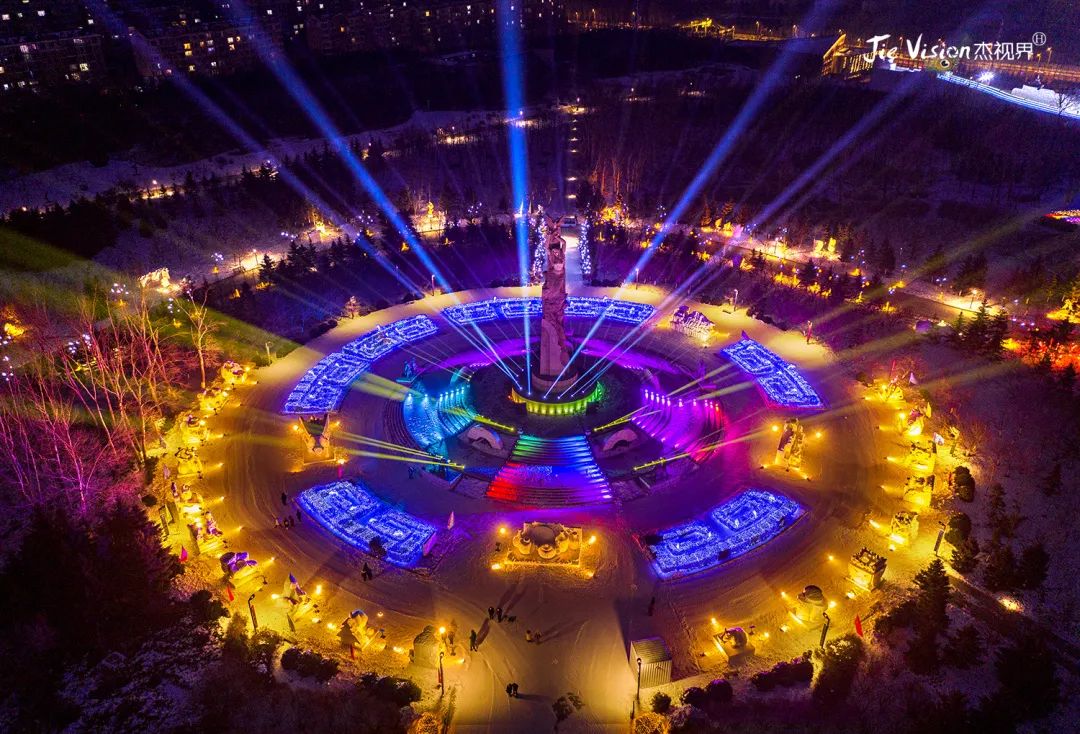 步入园中,虽身处于寒冷的冬季,雪雕和户外的完美结合,赋予了雕塑新的生机。园中地势高低错落有致,公园中原有一汪碧水,但是在这寒冷的冬季,早已变成冰面,高空俯览,犹如一块美玉镶嵌在公园中。