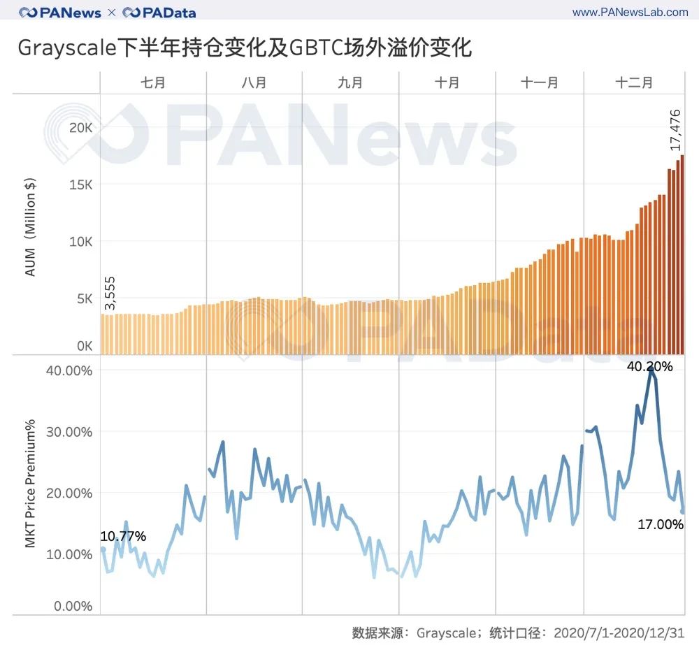 下半年灰度的BTC信托基金规模从35.55亿美元扩大至174.75亿美元,增持超139亿美元。