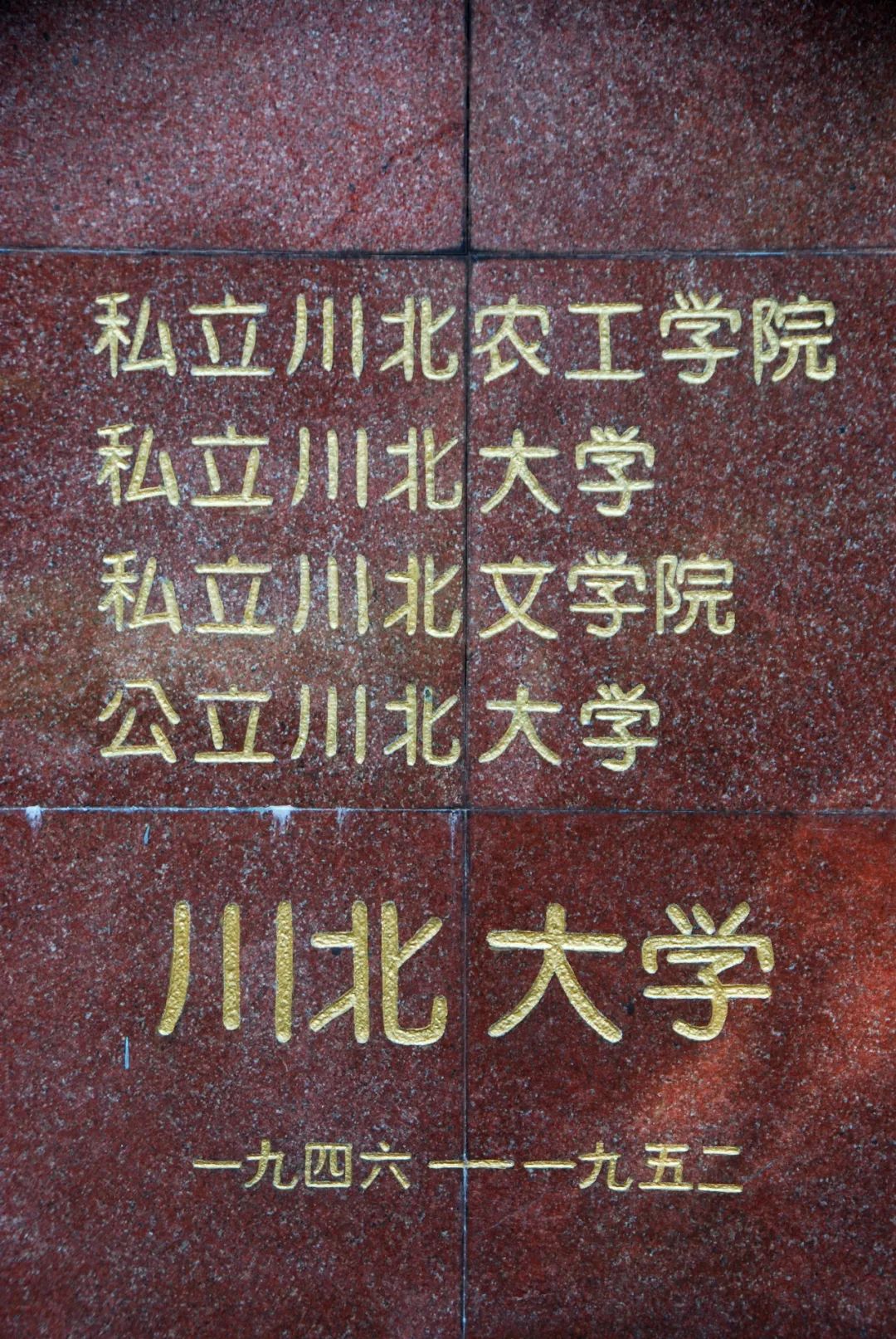 川北大学沿革(蓬州闲士 摄)1952年,全国普通高等学校进行院系调整。同年10月,西南文教部给川北大学下文,决定“川北大学自1952年度开始改为师范性质的高等学校,迁入川北人民行政公署原址(现西华师范大学北湖校区),原校名撤销,改称‘四川师范学院’”。