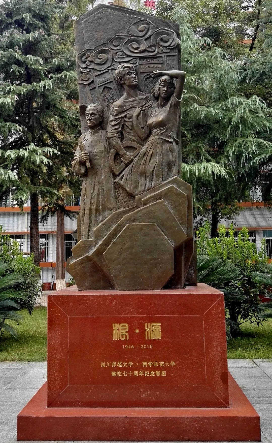 2016年,四川师范大学、西华师范大学建校70周年赠送三台中学(抗战时期内迁三台的东北大学旧址)的纪念雕塑《根·源》(蓬州闲士 摄)作者简介