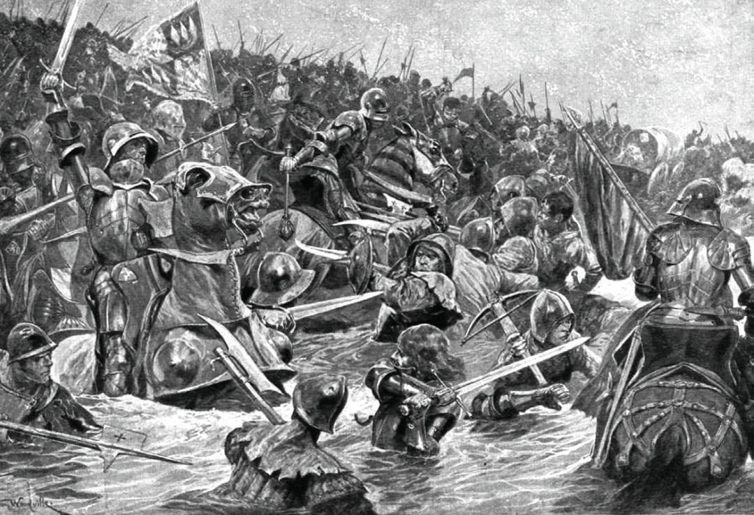 ▲ 陶顿战役现场因为逆风的缘故,兰开斯特家族的箭矢根本到不了约克家族军队的近前,不由得士气大减。
