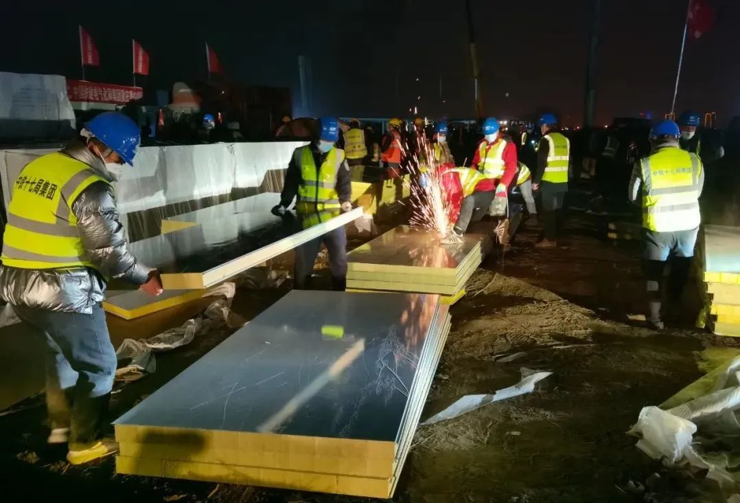 工作人员切割墙面立板,切割误差始终控制在3毫米以内。作为主要承建单位,中铁十四局集团、中铁十二局集团的“支援部队”仍在源源不断涌上前线,与前期队伍实现接力换手、交棒继续,始终保持最佳状态、最强战力、最快速度。16日20时许,中铁十四局集团石家庄产业园42名员工投入门窗安装战斗中;22时许,位于沧州的石港项目部组织近60人增援队伍整装出发,并于当天到位上岗。中铁十二局集团从山西原平,星夜增派近100名赶赴现场。多批增援队伍的到来,有效缓解了当前人员长时间高强度作战带来的精神紧张、身体疲惫等问题。