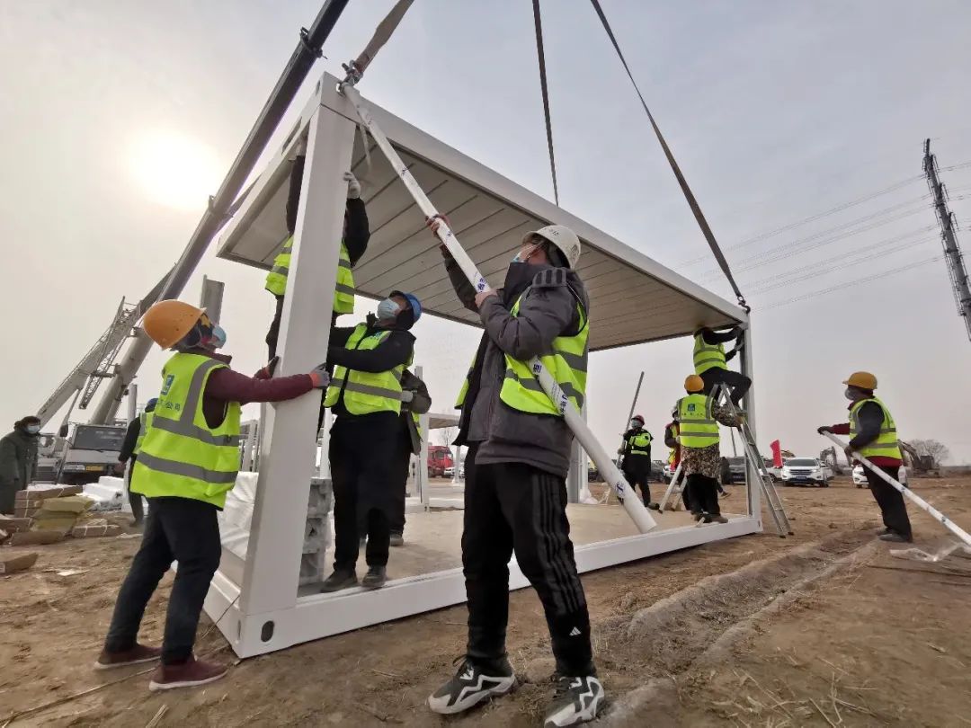 中国建筑工作人员搭建集中隔离点隔离集成房51小时!隔离点全面送电