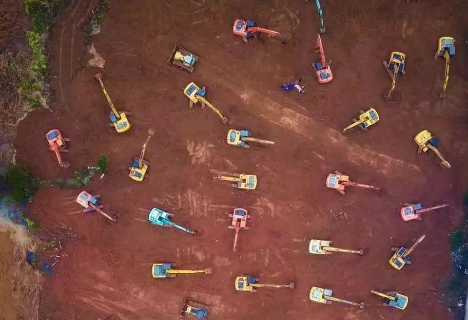 ▲ 2020年1月24日上午,武汉火神山医院开建,现场上百台机械同时开挖,央企参建单位春节期间连续7天昼夜施工,2月3日火神山医院如期交付。从武汉到石家庄
