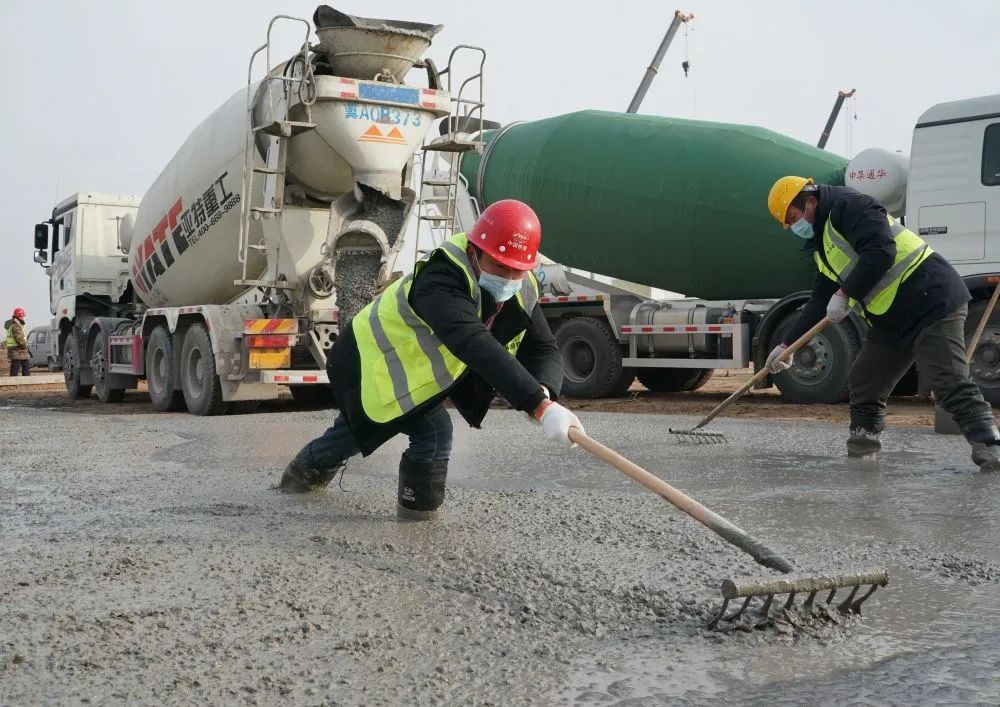 ▲ 1月14日,中国铁建建设工人在石家庄市集中隔离点建设工地硬化地面。