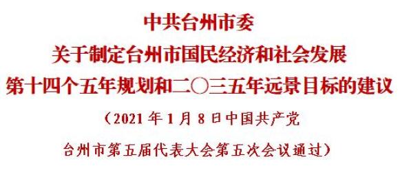 原标题:《中共台州市委关于制定台州市国民经济和社会发展第十四个五年规划和二〇三五年远景目标的建议》