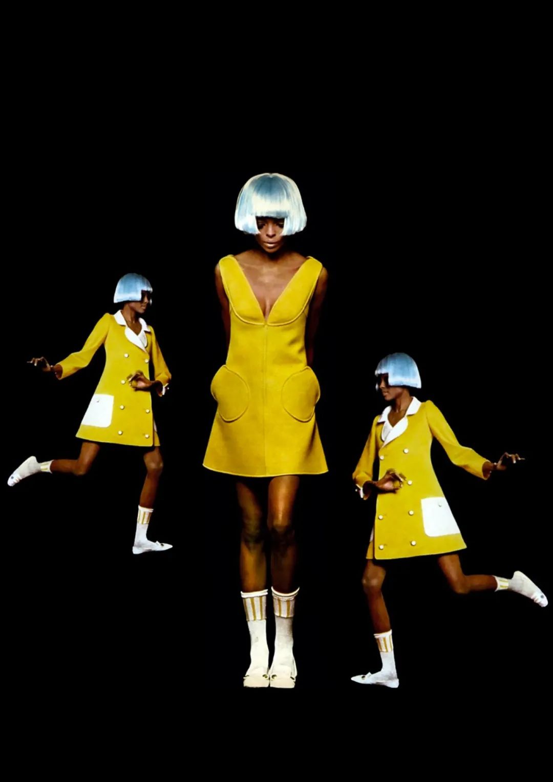 如今当人们重新回顾属于1960年代的时尚,迷你裙是一个绝对不会被略过的篇章。膝盖以上的裙摆自带一种欢快轻盈的气质,往常被小心遮掩的大腿和膝盖被大方展示,女性群体意识的解放从裙子的长短就可以窥见一二。