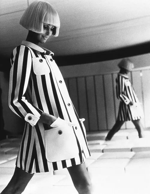 André Courrèges在1965年1月推出了裙摆落在膝上4英寸的迷你裙。长期以来,拖沓的长裙都限制了女性的行动,但是Courrèges推出的迷你裙却一举将这种华丽的桎梏打破。