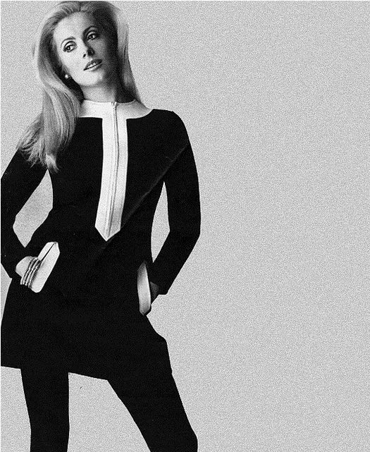 如果说Dior先生所设计的“New Look”是将女性的沙漏型曲线无限强化,收紧的腰身与大裙摆的对比将女性的柔美衬托得淋漓尽致;那么André Courrèges则是完全地走向了另一个极致。