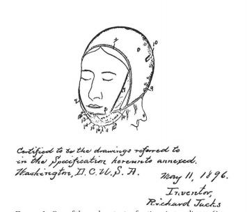 最早的防打鼾专利之一。上面写着“1896年5月11日, 发明家:理查德·杰克斯民间还流传着把网球缝到睡衣上可以治疗打鼾的说法。理想状态下,只要打鼾者一仰卧,就会被背后的网球硌醒,从而停止打鼾。