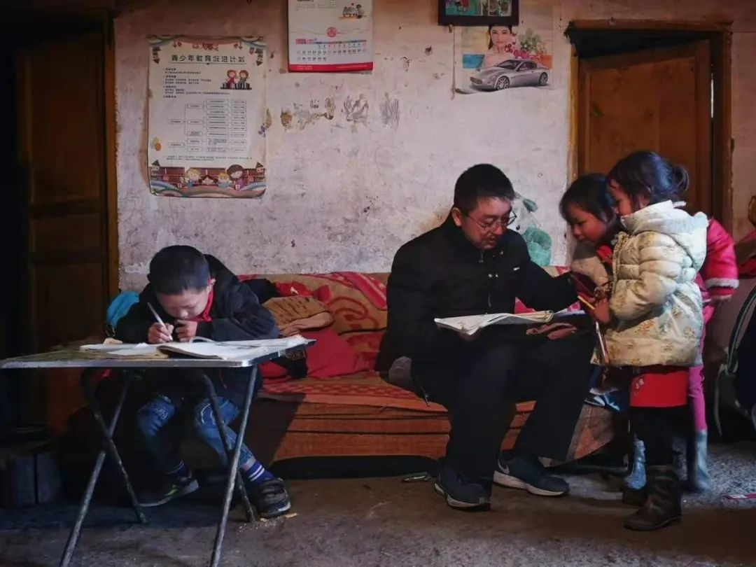 2018年11月,陈劲松给后池村帮扶家庭孩子送去印有北大字样的笔记本并辅导作业。正如他在诗中所写
