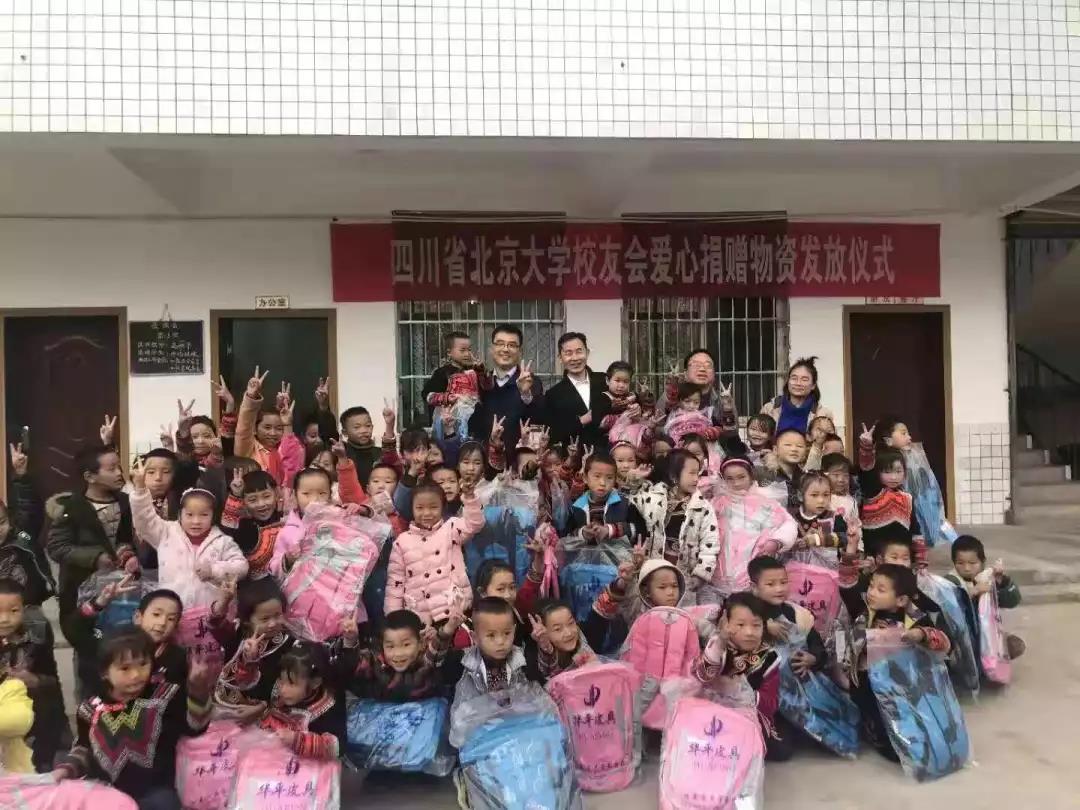 四川校友会为孩子们送去书包和礼物2019年5月,北京大学校友摄影俱乐部刘学红一行5人到劳动镇笆子房村小学开展以“传播爱心、记录成长”为主题的公益助学活动,为全校59名学生拍照,并向每人捐赠了平板学习电脑等学习用品,向老师捐赠了办公设施,向其他三所学校捐赠了相机。