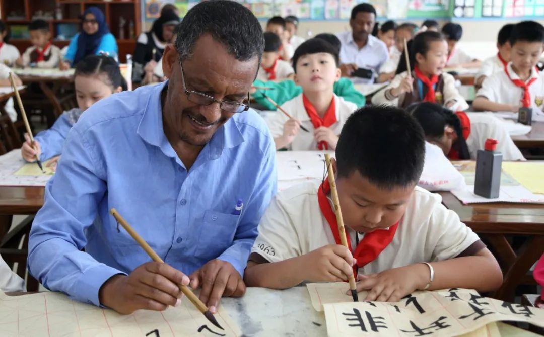 学校共接待近百名位师生及国外友人的来访交流,并向外宾赠送金手指雕塑、书法、剪纸、绘画作品等礼物,传播伟大的中华文化。