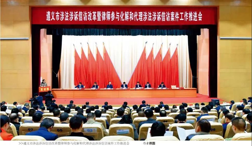 在中央政法委下发《关于建立律师参与化解和代理涉法涉诉信访案件制度的意见》后,遵义市律协主动作为,在贵州省率先成立领导小组,制定工作制度,通过评析信访案件、做好释法劝导工作、提出处理建议等方式,充分发挥律师作为第三方化解社会矛盾的重要作用,建立了由251名律师组成的专家库,通过指派律师进驻政法机关和信访部门,化解了一大批信访疑难复杂案件。2017年3月31日,遵义市召开涉法涉诉信访改革暨律师参与化解和代理涉法涉诉信访案件工作推进会,第一次由市委政法委表彰30名先进律师,充分肯定了律师工作。
