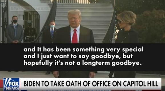 “我会以某种形式回来的”但另一方面,特朗普却并没有选择沉寂地结束他充满争议的任期。在拜登的就职仪式前2小时,当特朗普离开白宫后,这个被CNN在直播中称作“渺小且可悲”的美国前总统一边继续表示着自己对美国的热爱,一边则称他希望这不会是一次“长久的再见”。