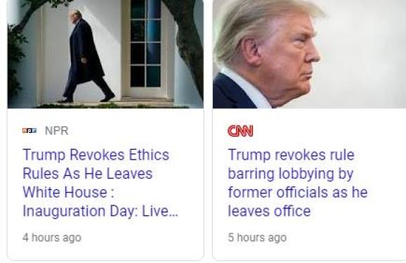 不仅如此,根据多家美国媒体报道,特朗普同时还宣布他已经取消了2017年他就职时签发的禁止前政府人员在离开公职后担任说客的禁令。这也让一些他的支持者感到了背叛。