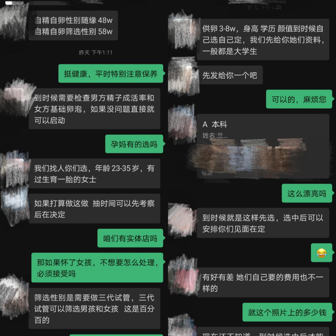 小李表示,如果夫妻二人不愿或不能使用自己的卵子,可以根据供卵方的身高、学历和颜值等条件进行选择,“一般供卵的都是大学生”。