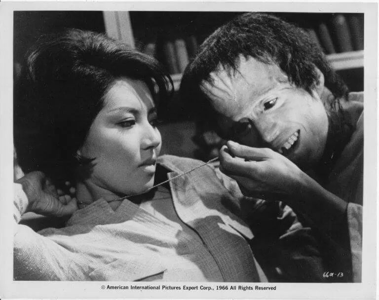 《科学怪人对地底怪兽》剧照这部电影讲的是二战末期,发现了一个科学怪人制造的不死心脏,并将之转移到广岛军方医院,准备作为秘密武器,创造不死士兵。