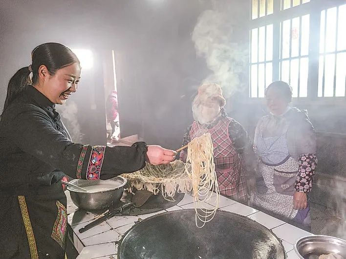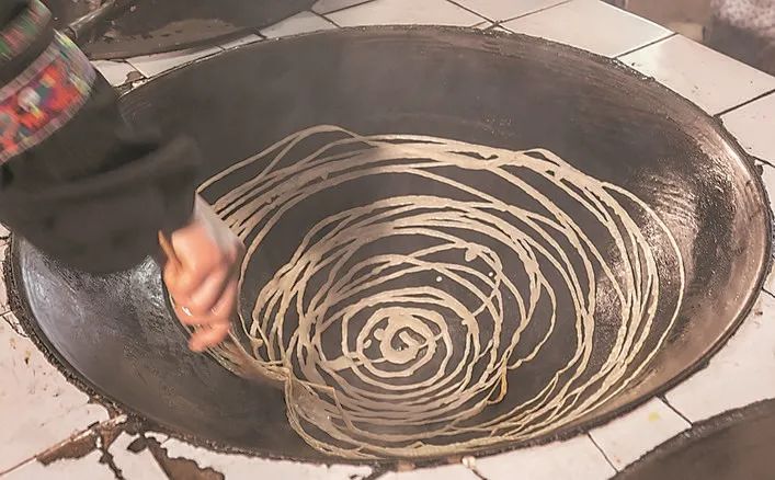 米浆烙制成型随着科技的发展、物流的发达和人们返璞归真的心,又让“土家艳子”们找到了商机,在网络直播时代,传统的手工食物又在古老的院子里得以“重现”,走出山外。