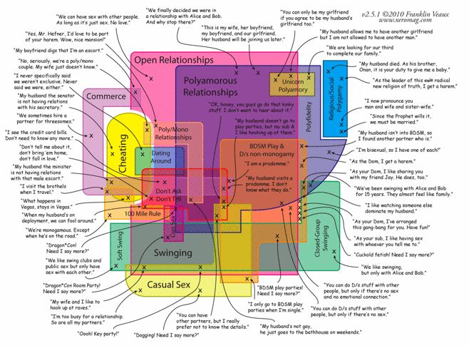 2014年有统计显示,美国有120万到980万的多元伴侣。那么,多元伴侣制到底长什么亚子?著名多元伴侣作家Franklin Veaux 称,多元伴侣是游戏规则的变革者(the game changer)。