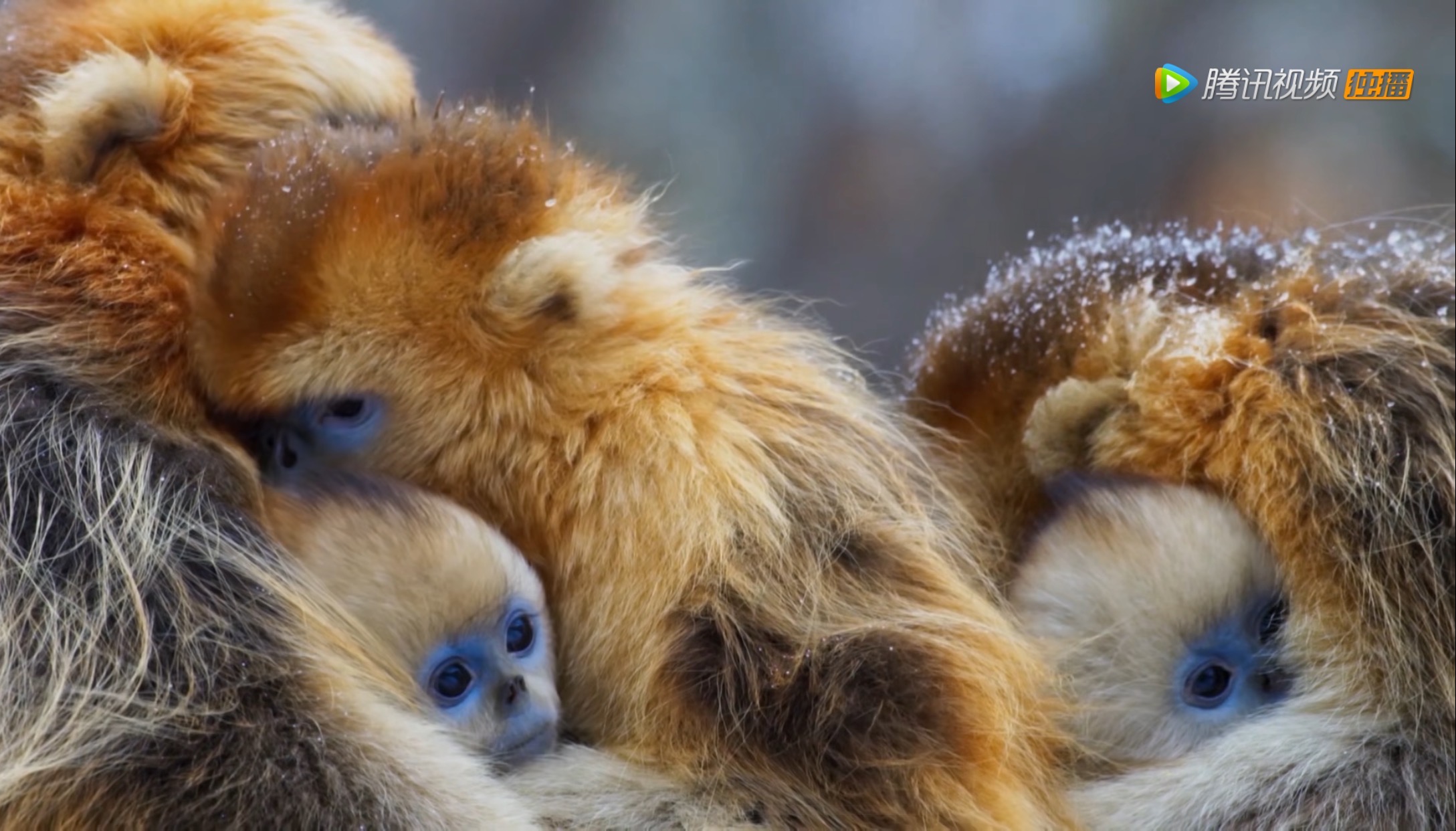 蜷缩在一起的金丝猴!