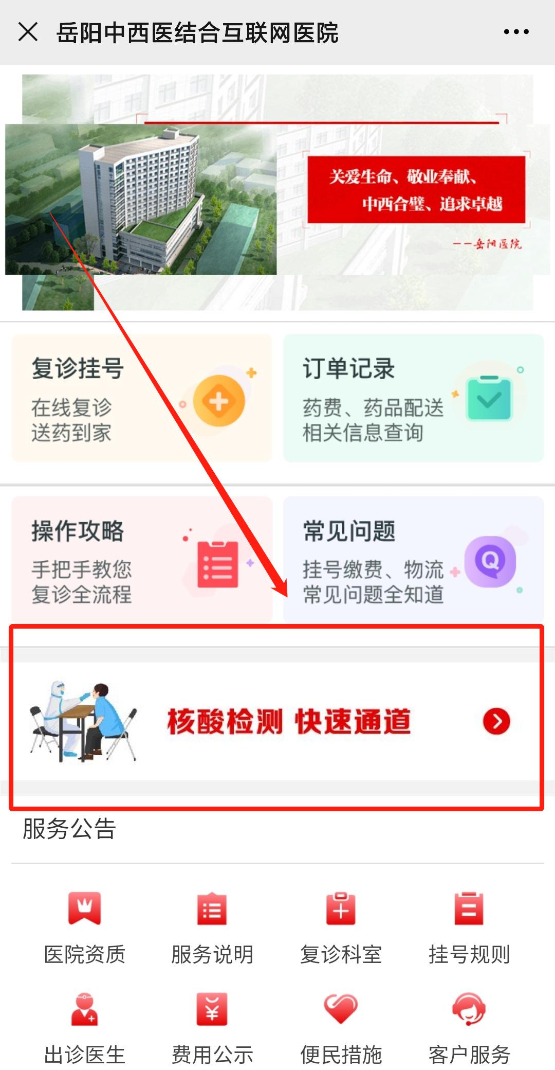 ⑱ 按照首页的提示信息来院进行核酸检测