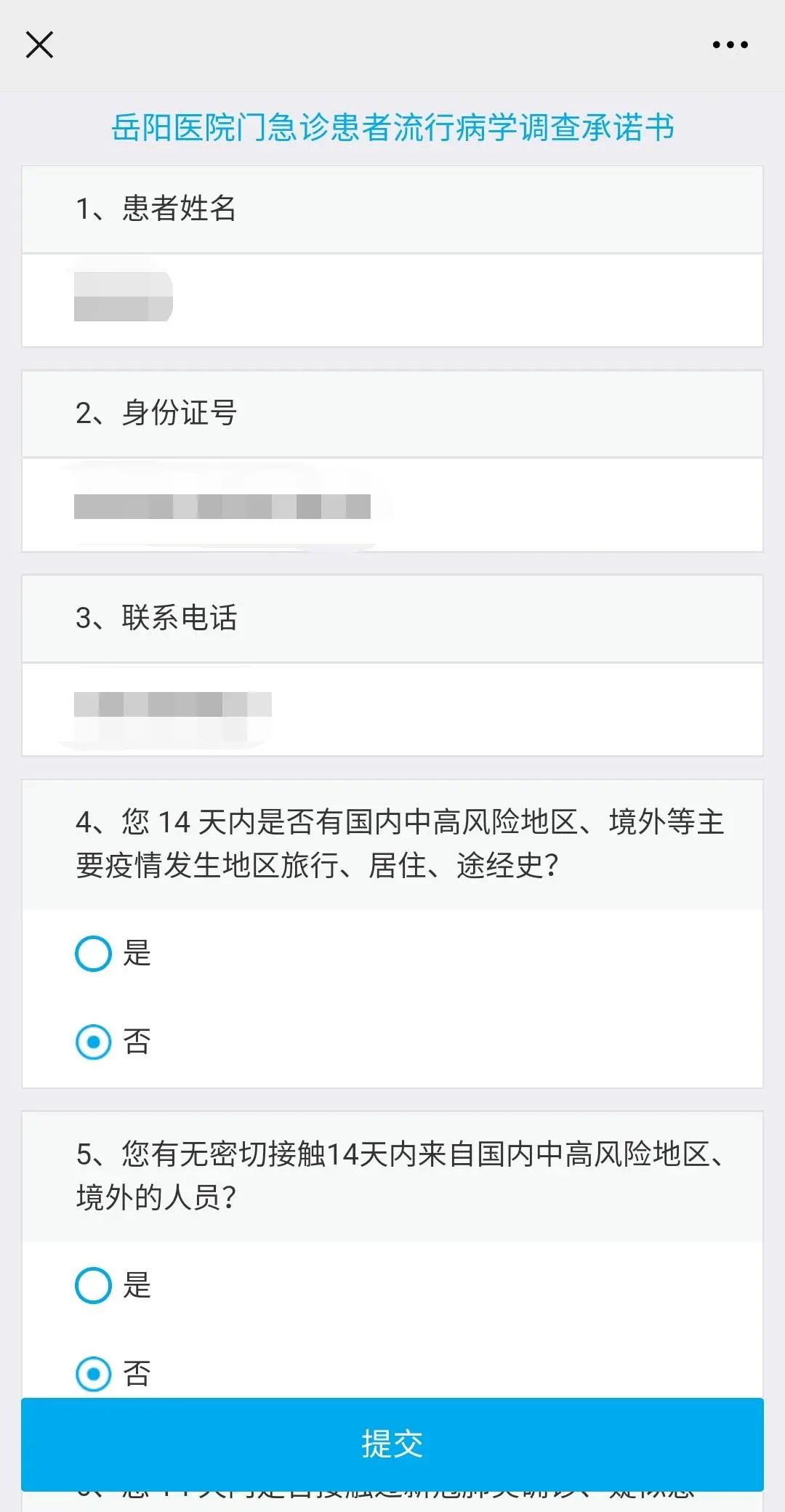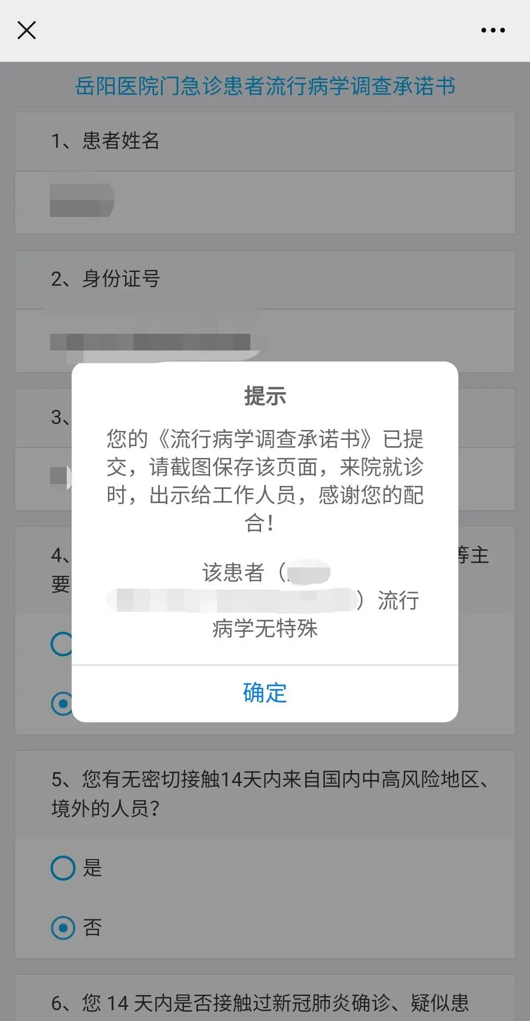 ③ 填写门急诊患者流行病学调查承诺书