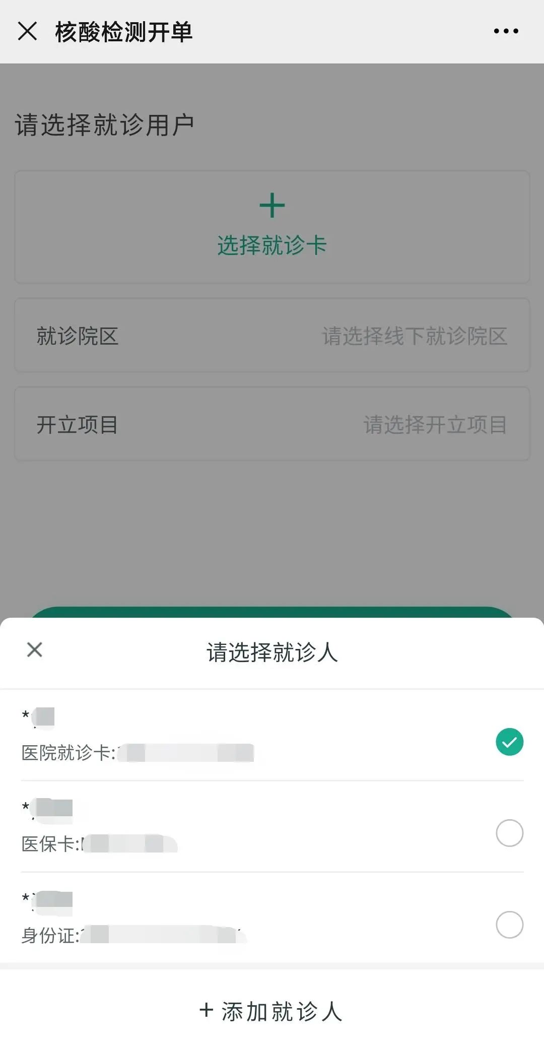 ⑤ 选择就诊人