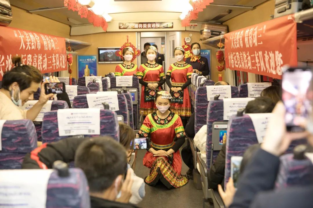 重联动车组列车由长沙客运段动三车队担当值乘任务。为确保重联动车组服务优质,让旅客乘车体验更美好,动三车队启动2021年“大美黔常,精彩动三”服务品牌培育计划。