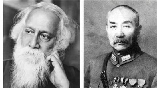泰戈尔(左)、阎锡山最经典的莫过于阎锡山与印度文豪泰戈尔的一次交流:1924年5月,泰戈尔应邀率团访华,在北京他听说了山西的乡村建设后非常感兴趣,改变行程来到山西。擅长算计的阎锡山,怎会放过这次“外宣”良机?他与贵客大谈“中”的哲学。