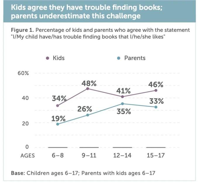 △42%的孩子很难找到自己喜欢的书,不经常读书的孩子高达59%,然而只有28%的家长承认孩子找不到书,低估了“找书”这件事的挑战。究竟孩子们喜欢什么样的书呢?最好的答案是问问Ta们自己。