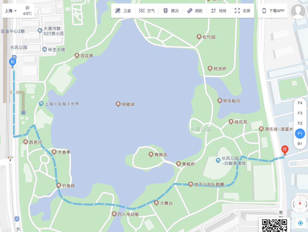 高德地图显示13分钟步行抵达(穿过长风公园)高老师还特意拍摄了