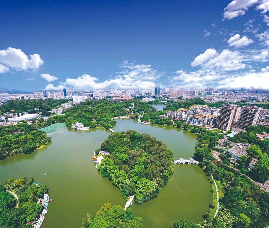 周华东 摄园山湖公园是城市品质提升工程的重点项目,音乐喷泉采用的灯光亮化联动控制和激光点亮技术,是江门市打造宜居宜业宜游智能新区的一个缩影。公园位于江门体育中心旁,总面积约28.1公顷,其中绿化面积约11.6公顷,硬地面积约7.1公顷,水面积约9.4公顷。公园内,除了沿湖水岸广阔的“亲水平台”,还有随处可见的漂亮绿植。园中芳草遍地,绿树成荫,各种蜿蜒优雅的小径,移步换景,让人心旷神怡,全园集自然、生态、湖面和亲水为一体,给人一种到了水乡的感觉。每逢夜幕降临,园山湖公园里的音乐喷泉在月亮的衬托下更显得梦幻烂漫醉人。