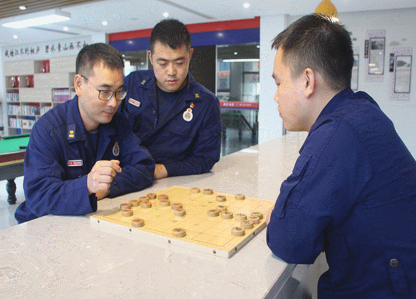 别看平日里都是一副大老粗的样子,在棋场上,消防员们一个个都是下棋高手,不争个胜负谁都不愿意离开。矫