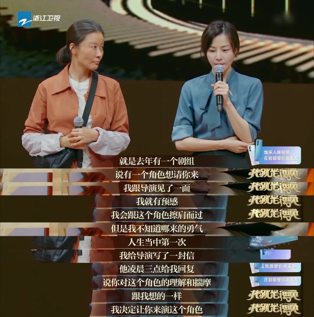 表演结束以后,刘孜分享了自己最近的一些经历,说之前试镜了一个角色,回家之后就觉得这个角色可能会和她擦肩而过了,于是她给导演写了一封信,写了一些自己对这个角色的理解。导演凌晨三点给她回了信,认为她和自己对这个角色的认识是一致的,于是把这个角色给了刘孜。