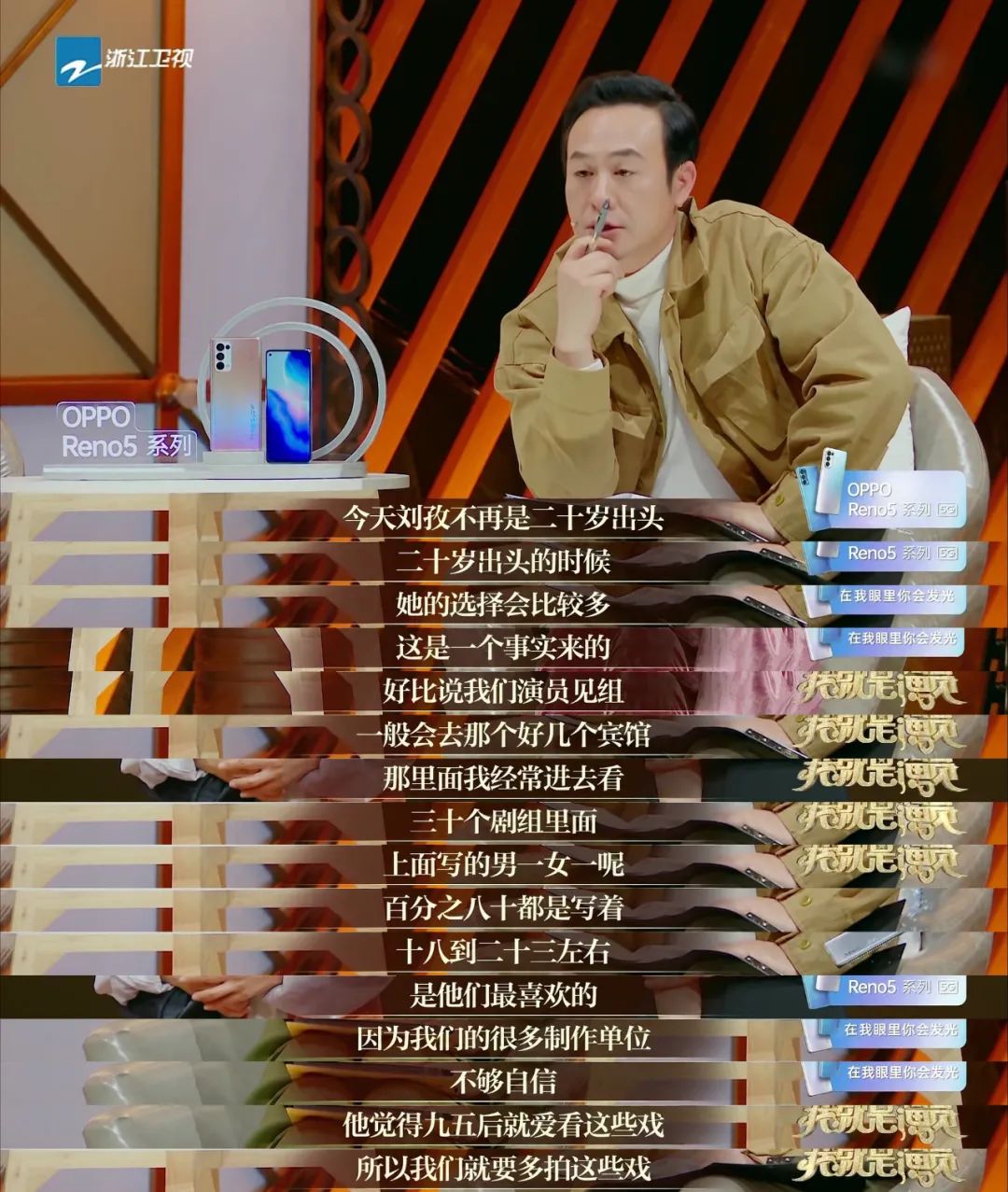 这时候,坐在旁边的张颂文终于忍不住了。他说他去到一些剧组,面试演员的房间门上80%都会贴着18-23岁,这是剧组喜欢的年龄。