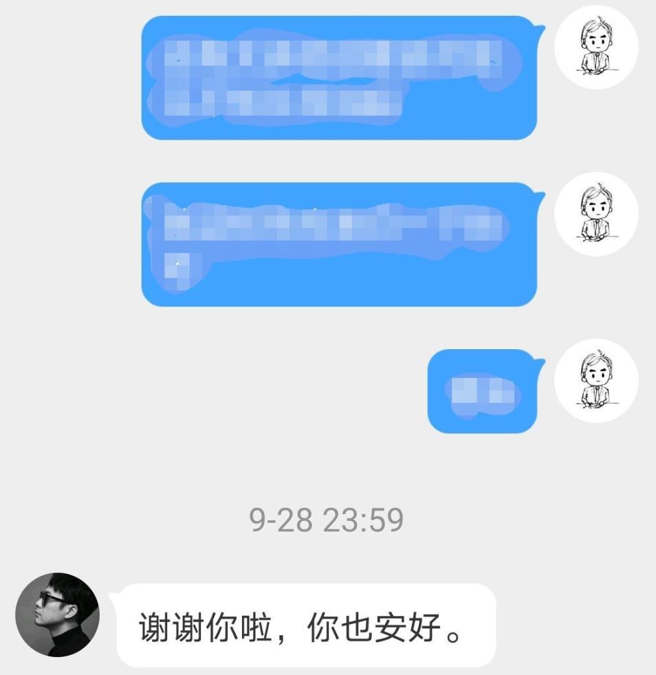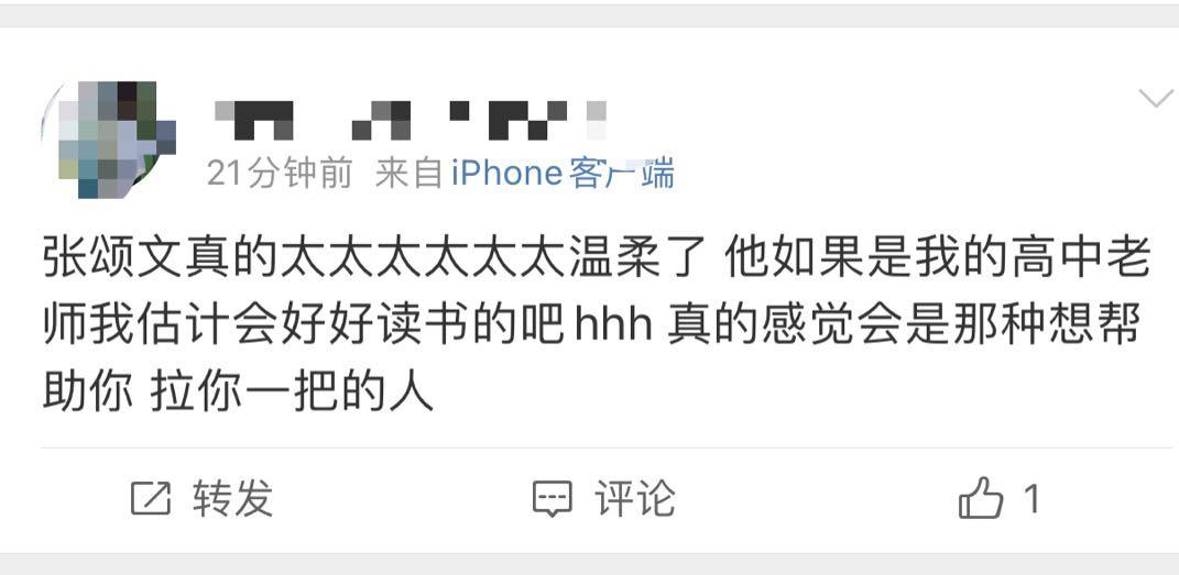 《隐秘的角落》口碑爆表之后,有个粉丝去微博给张颂文发了大段留言,表达对他的喜爱,没想到张颂文竟然读了,还给他回了一句:“谢谢你啦,你也安好。”