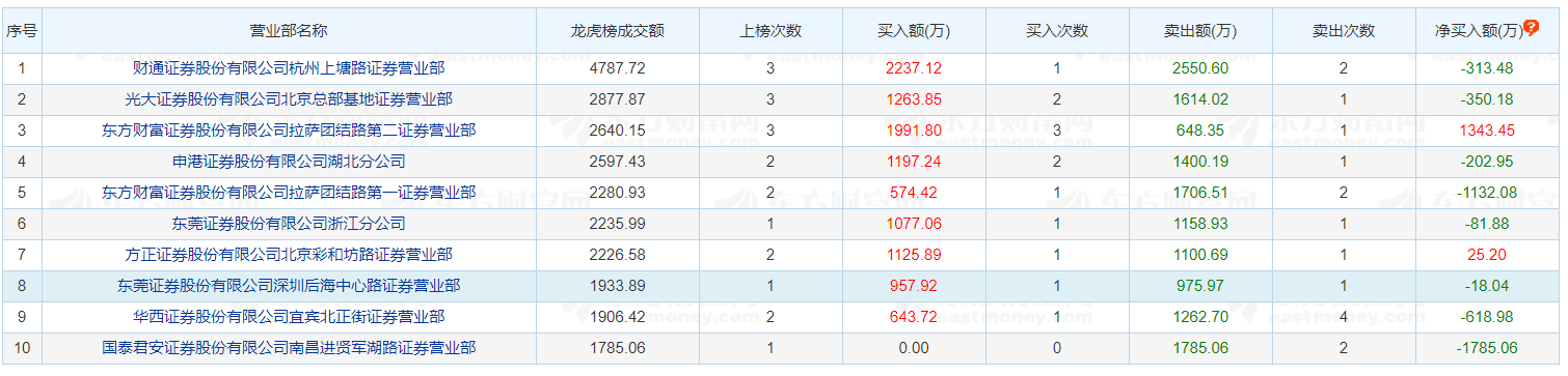 其中,该股1月8日第一次登上龙虎榜,当日买入最大金额的前三名分别为财通证券杭州上塘路证券营业部,买入2237.12万元,华鑫证券上海分公司买入813.52万元,华宝证券上海东大名路证券营业部买入529.60万元。