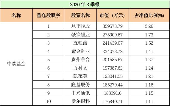 中欧基金同样是主动权益基金管理能力较强的基金公司,旗下周应波、周蔚文、葛兰等一批知名基金经理。从中欧基金去年底的十大重仓股来看,前三大重仓股为赣锋锂业、顺丰控股、美的集团。