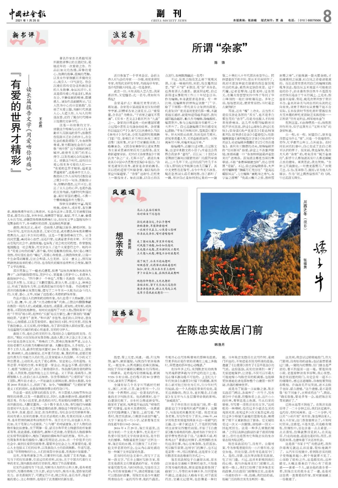 不过,虽然之前没怎么停下观观风景,只是一味地向前,向前,现在蓦然回首,“家”不“家”不敢说,用“杂”来命名,还真有那么点意思。就说职业吧,自己获得过从事期刊工作三十年纪念证书。作为编辑,本身就要求是杂家。有一种比喻,说编辑知识结构应该像“丁”字。除了下面那一竖代表专业知识的深度,代表知识广度或者说宽度的那一横,本就是越长越好,就是知道得越多越好,换句话即越杂越好。敝人作为编辑,除编报纸、编期刊外,参与主编出版的书籍有二十本开外了。自己还就编辑工作的感受发过感慨:“平生只种纸间田,雪案萤灯度岁年。怀火风轻云淡夜,饮冰花好月圆天。常忧帝虎遭人笑,又怕金根谬误传。只恨离朱明不得,秋毫未视运斤难。”