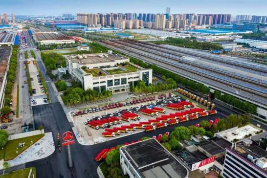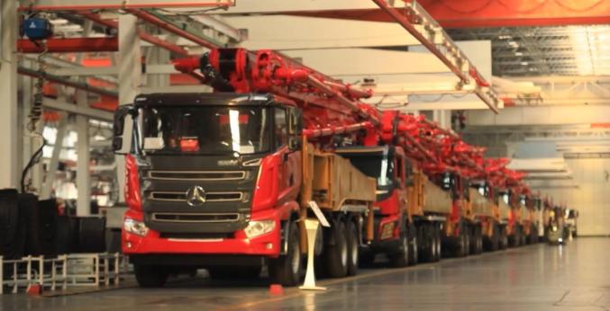 但今年可以说是三一国产底盘逆袭的一年。现在每十个三一泵车的客户,就有六个会选择国产底盘。因为预订外国底盘要等四到六个月,今年因为疫情变得更长。而且三一这款底盘是专门为工程机械设计的,更懂工程机械、性能甚至更加优越。国产底盘在更换零件、后续维修方面也有优势,所以有些客户更喜欢选配国产底盘。长沙是三一集团的总部,混凝土泵车就是从长沙总部传说中的“灯塔工厂”生产出来的。下料、焊接、组装等等工艺,都合并在了一起。钢板运进来,泵车开出去,只要45分钟就能下线一台泵车。