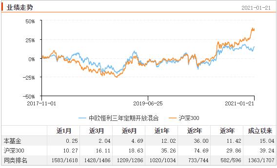 究其原因,业绩的严重低于预期是使投资者“众叛亲离”的元凶,在过去的2020年中,中欧恒利三年定期开放混合型仅仅获得了8.51%的收益,相比沪深300的27.21%差之甚远,在1005只同类基金中排行倒数第10名。其第四季度的收益只有-3.3%,也难怪落得这么个结局,被投资者笑侃为“真正的恒利”。